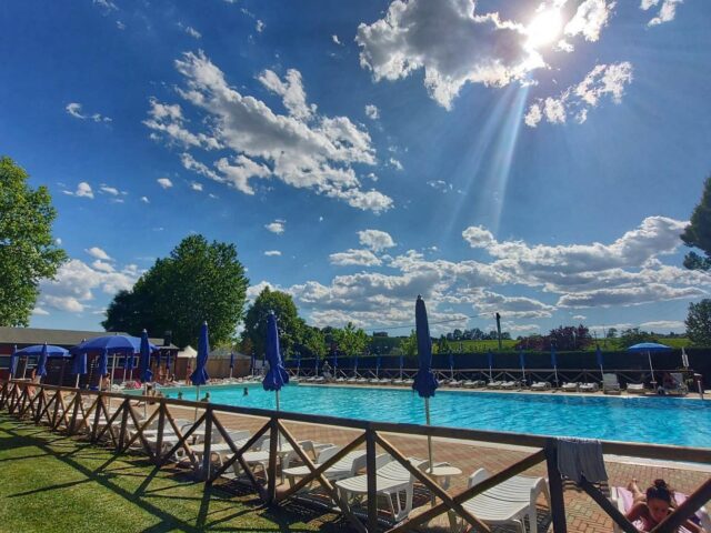 A disposizione degli ospiti del camping la piscina scoperta con lettini, ombrelloni, area verde e solarium.